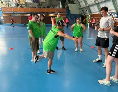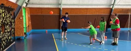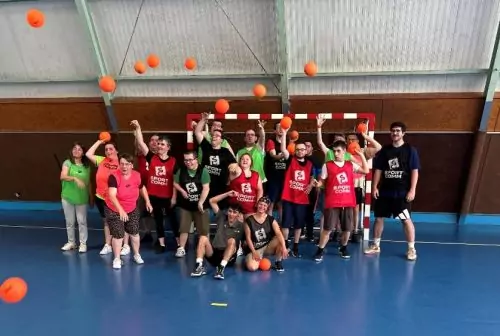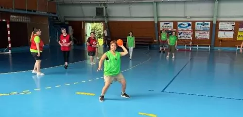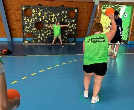 Le jeudi 12 juin 2025, sept personnes accueillies à l’Accueil de jour de Montret ont participé au premier tournoi inter-établissements du Comité de Handball de Saône et Loire à TORCY.