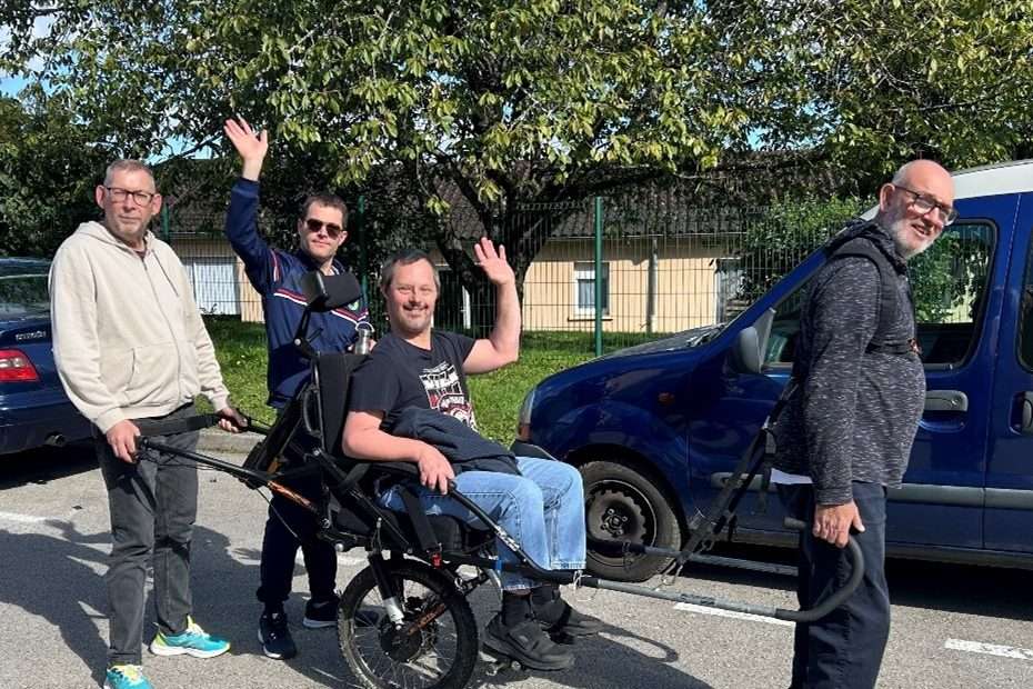 Les résidents du foyer de vie Les Lauriers ont vécu une belle première expérience de randonnée inclusive grâce à la Joëlette, un fauteuil tout terrain permettant à une personne à mobilité réduite de profiter des balades en pleine nature, portée par un équipage de volontaires.